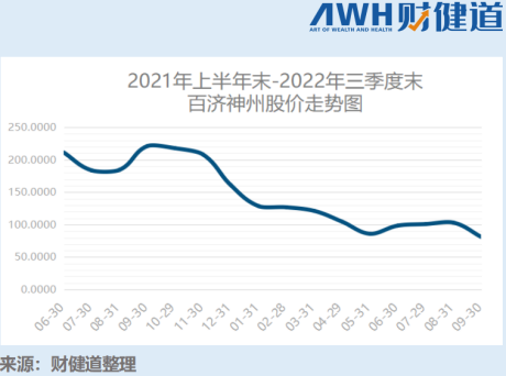 将时间线拉长,2021年6月30日-2022年9月30日,百济神州港股从211.2港元,跌到了81.05港元。
