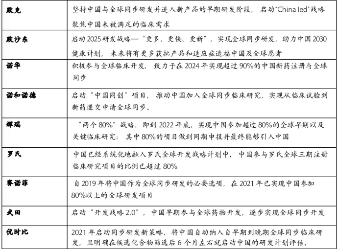 更加看重中国创新力量,升级中国研发中心地位。临床试验纳入中国区的时间不断前移,从III期到I期,有的甚至在临床前就会考虑中国市场的影响因素。此外,全球新药中国首发已经实现“零”的突破。