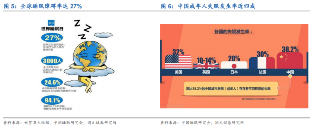 根据Datamonitor数据库显示,2019年全球失眠患者人数约为14亿人,其中亚洲患者为6.9亿人。另外,据中国睡眠研究会数据显示,中国成年人失眠发生率高达38.2%,超3亿中国人有睡眠障碍,患者人群相当庞大。