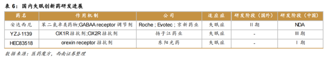 目前,除了苯二氮䓬类受体激动剂以外,新一代的安眠药褪黑素受体激动剂、食欲素受体拮抗剂同样备受市场关注。