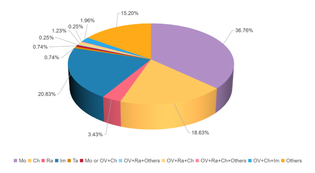 图3.临床研究中OVs类型的比例