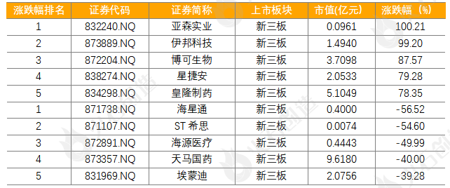 同上月相比,亚森实业、伊邦科技、博可生物、星捷安、皇隆制药的涨幅较大,其中亚森实业(832240)市值涨幅高达100.21%,伊邦科技(873889)市值涨幅高达99.20%;海星通、ST希思、海源医疗、天马国药、埃蒙迪的跌幅较大,其中海星通(871738)市值跌幅达56.52%,ST希思(871107)市值跌幅达54.60%。