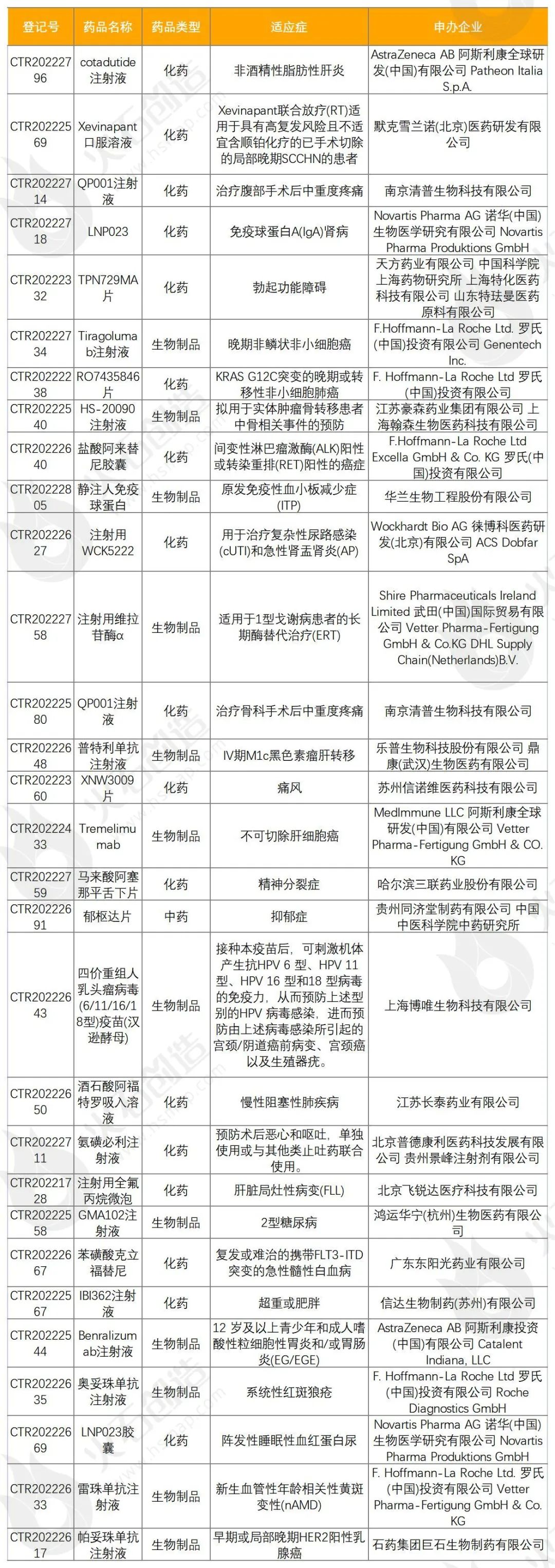 2022年10月,全国共有201个产品获批临床,和上月相比,减少了37.6%。其中生物药领域61个,中药领域3个,化药领域137个。