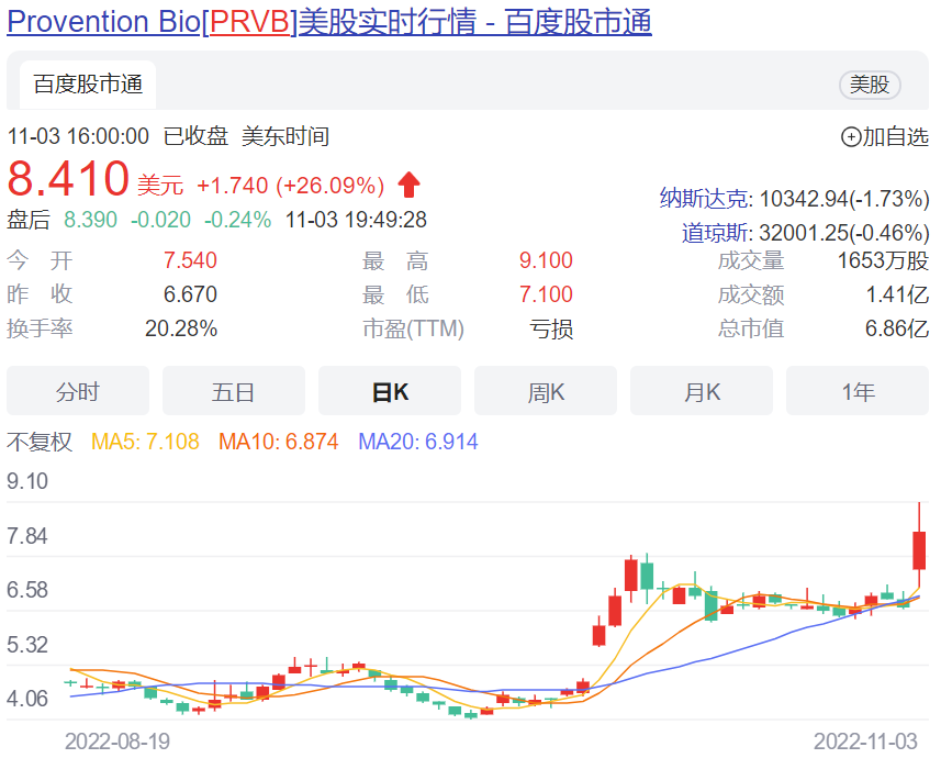 受此消息影响,Provention Bio股价大涨26%,目前市值为6.86亿美元。