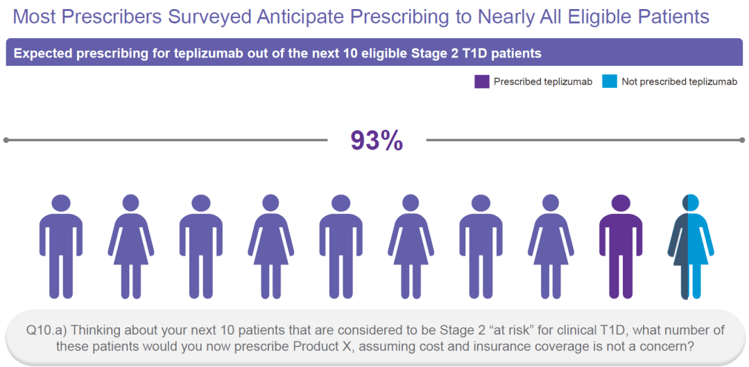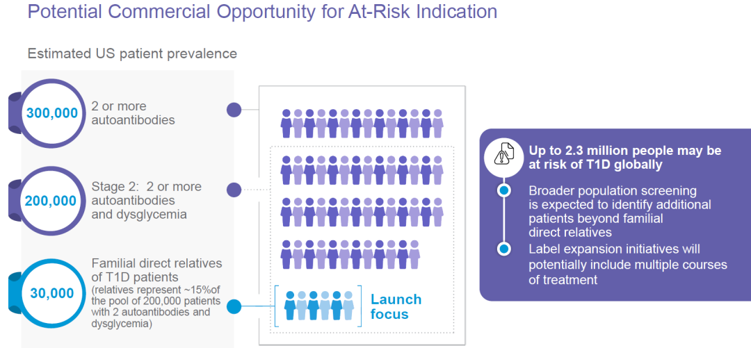 在美国,stage 2的潜在一型糖尿病高危人群有20万人,也讲是Teplizumab的适用人群。一型糖尿病发病较早,延迟发病意味着疾病负担可能推迟到患者能够更好地管理其疾病的年龄,例如婴儿期、小学、高中甚至大学之后,这对于疾病的自我管理具有重要意义。