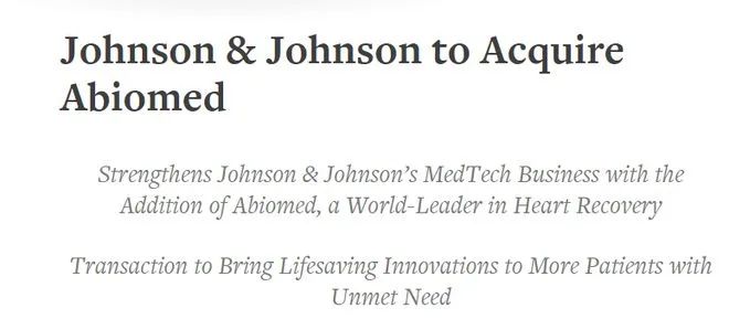 目前,两家公司的董事会已经批准这项并购,预期交易能够在2023年一季度结束前完成。交易完成后,Abiomed将作为JJMT的独立业务运营,成为强生旗下12个JJMT的平台公司之一。