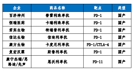 此外,百济神州的替雷利珠单抗、恒瑞医药的卡瑞利珠单抗、君实生物的特瑞普利单抗、信达生物信迪利单抗在本次谈判中,预计会新增适应症谈判。