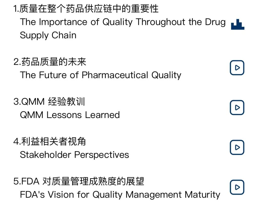 随后FDA讨论了几个话题,分别是:从FDA的QMM计划中吸取的经验教训、利益相关者的观点、FDA对QMM的愿景、利益相关者和FDA的潜在利益,这几个话题均已在今年4月发布的质量管理成熟度白皮书和今年5月进行的质量管理成熟度线上研讨会中讨论过,这里就不再详细阐述,笔者只把本次会议新增的内容做简要介绍。