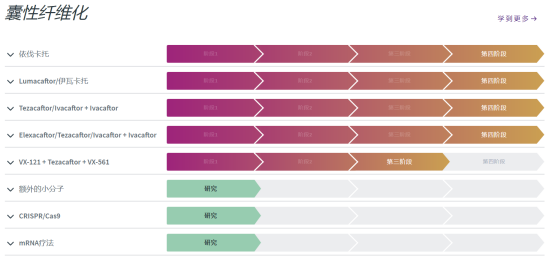 图4 部分产品管线(图源:Vertex Pharmaceuticals官网)