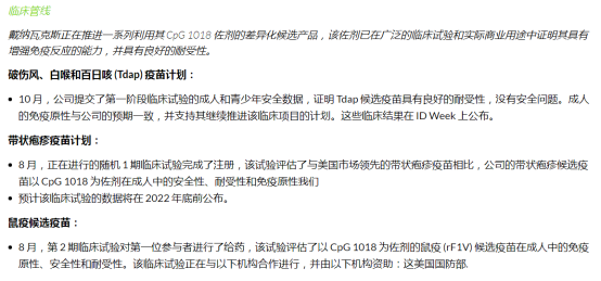 第三季度HEPLISAV-B®疫苗产品净收入为3750万美元,与2021年第三季度的2270万美元相比增长65%。目标客户的市场份额戴纳瓦克斯现场销售团队增加到约43%,总市场份额从2021年第三季度的约32%和25%分别增加到2022年第三季度的约32%。2022年第三季度CpG1018佐剂收入为1.263亿美元,相比2021年第三季度8430万上涨50%。