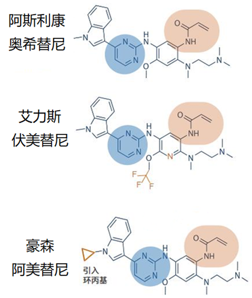 三代EGFR抑制剂结构对比