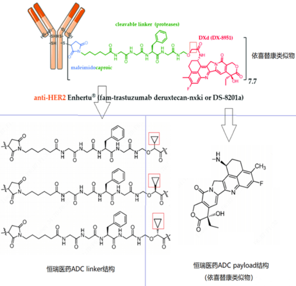 DS8201与恒瑞医药ADC结构对比