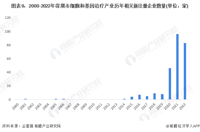 根据企查猫查询数据显示,2000-2022年深圳市细胞和基因治疗产业历年新注册企业数量整体呈现波动增长趋势,近三年来新增企业剧增。其中2021年,新注册企业数量达到高峰,全年新增企业数量约有90家。截至2022年9月20日,深圳与智能网联技术产业相关的注册企业超270家。