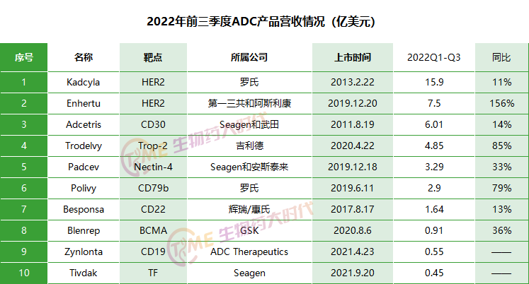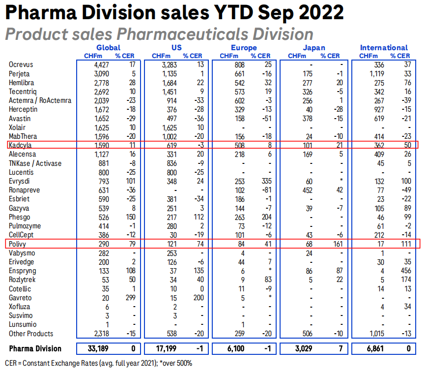 Kadcyla在2022年前三季度营收15.9亿美元,同比增长11%。