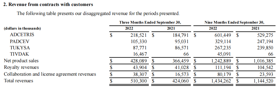 Adcetris在2022年前三季度营收6.01亿美元(Seagen销售额)。