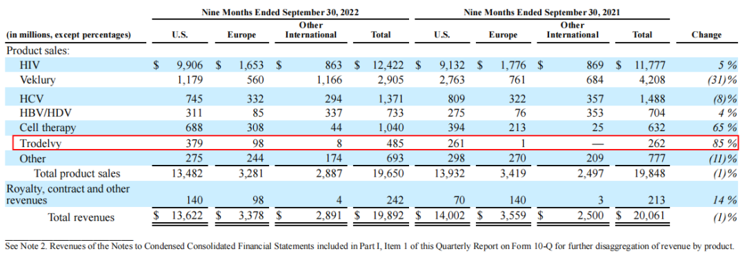 吉利德以210亿美元收购Immunomedics后获得的核心药物Trop2-ADC产品Trodelvy,今年前三季度营收4.85亿美元,超过去年营收的3.8亿美元,同比大增85%。