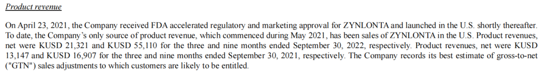Zynlonta(loncastuximabtesirine-lpyl)前三季度营收0.55亿美元。