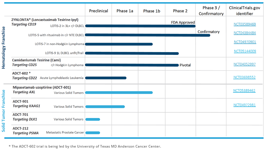 ADC Therapeutics的研发管线