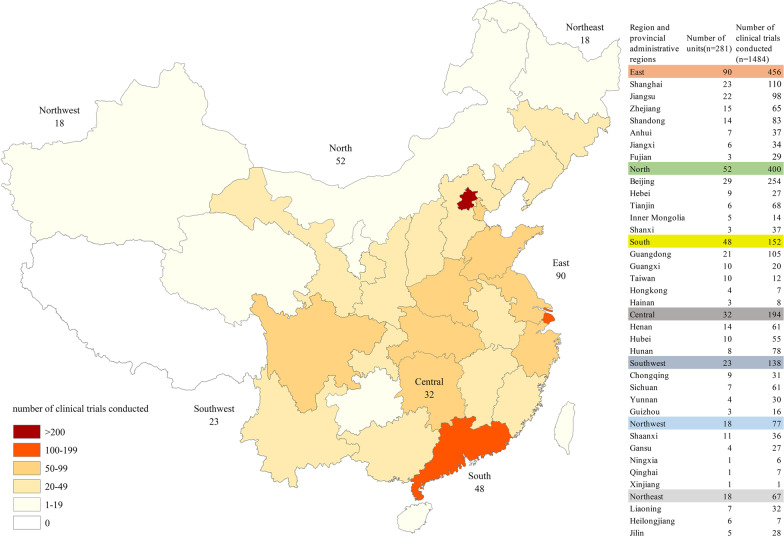 图4 罕见病临床试验单位的地理分布情况