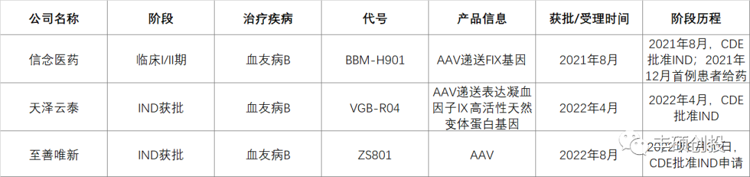 图2 国内血友病基因疗法临床进展(来源:公司官网,丰硕创投整理)