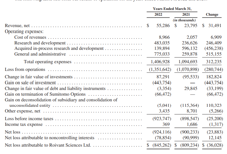 2022年6月28日,Roivant发布公司2021年年度报告(2021年财政年度时间段为2021年4月1日~2022年3月31日)。