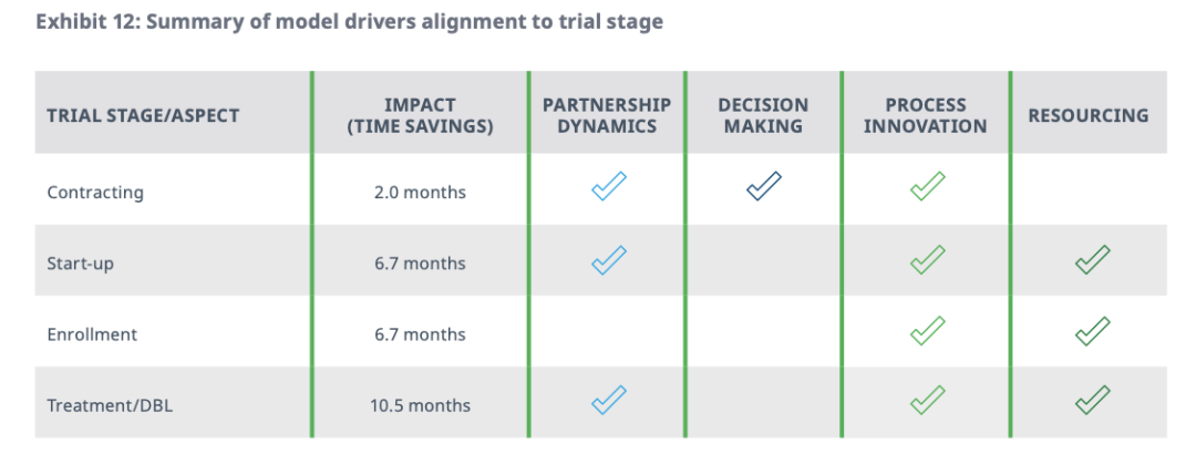 资金等系统性资源通过OWS、CEPI和其他机制流向试验团队。申请方和CRO对特定流程步骤中的人员配置的投资,帮助提高临床试验速度。资源投资对于扩大和成功实施上述大多数流程创新也至关重要。