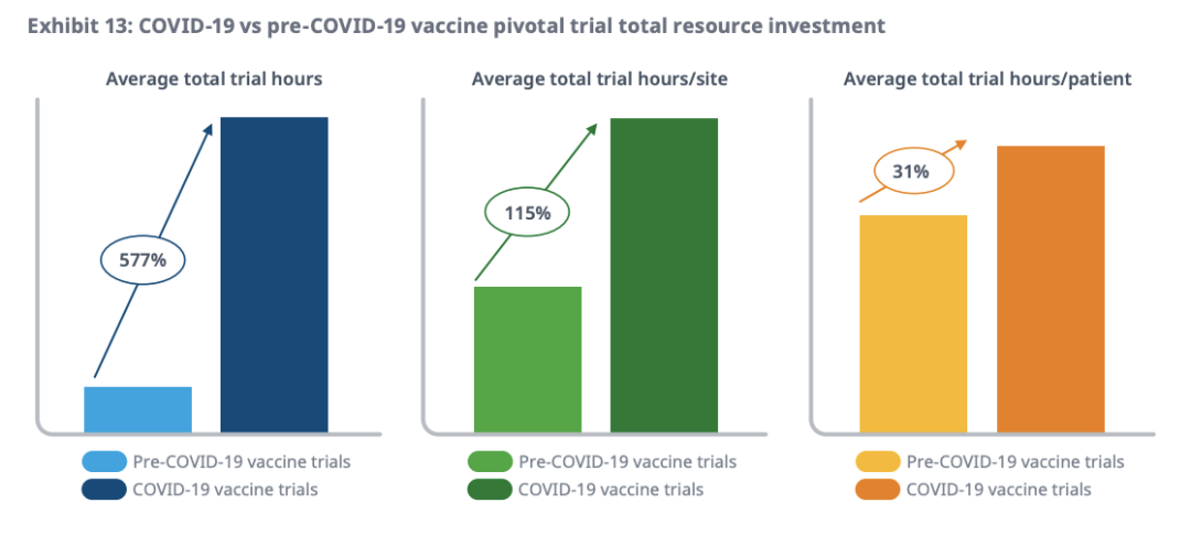 比较新冠前后疫苗试验的资源利用情况,IQVIA发现,对项目、试验机构和研究参与者层面进行投资,的确可以加快临床试验节奏。
