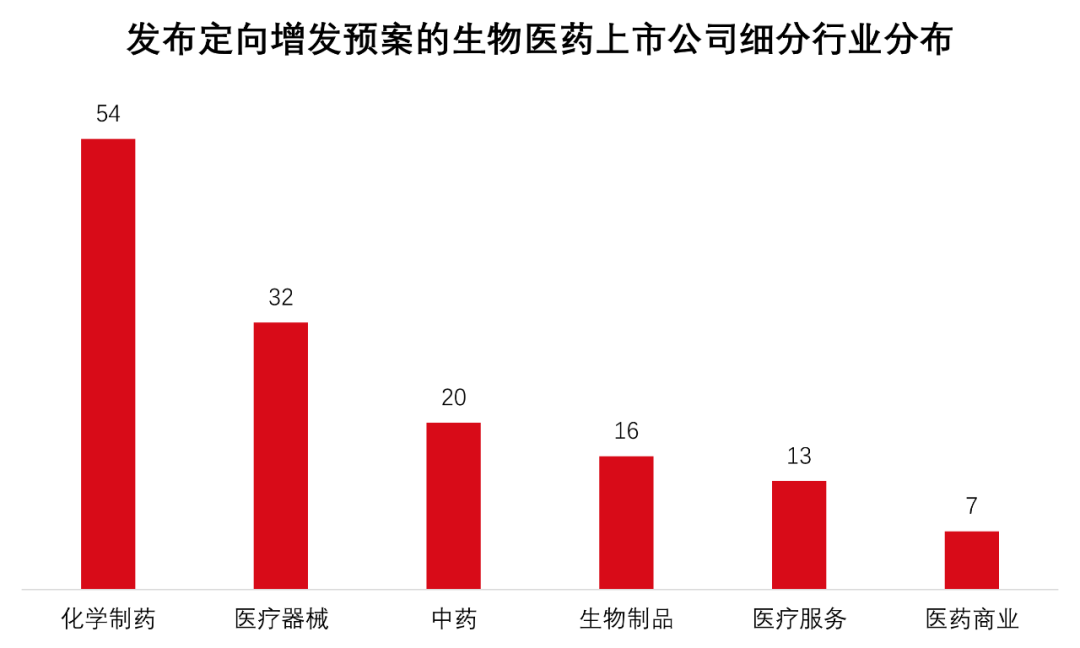 图2 发布定向增发预案的生物医药上市公司细分行业分布(统计期间:2020年-2022年10月31日)数据来源:康橙投资、Wind