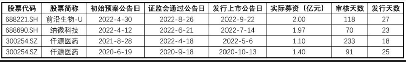 表1 通过简易程序实施“小额快速”定向增发的生物医药上市公司案例(统计期间:2020年-2022年10月31日)