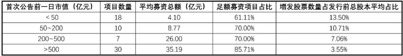表2 生物医药上市公司定向增发市值分布情况(统计期间:2020年-2022年10月31日)