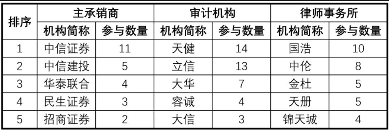 数据来源:康橙投资、Wind表3 参与生物医药上市公司定向增发的代表中介机构(统计期间:2020年-2022年10月31日)