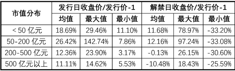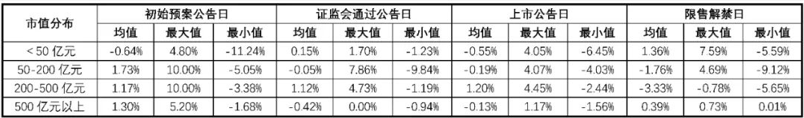 在2020年至2022年10月31日区间内已成功发行并已解禁的生物医药上市公司定向增发案例中,从总的市场反应来看,存在合适的投资机会。通过整理定向增发重要事件的日内市场反应(表4),结果说明中等市值生物医药上市公司发布定向增发预案是相对积极的市场信号;通过回顾定向增发锁定期间的市场情况,发现中小市值生物医药上市公司定向增发锁定期间有更为积极的市场表现(表5)。