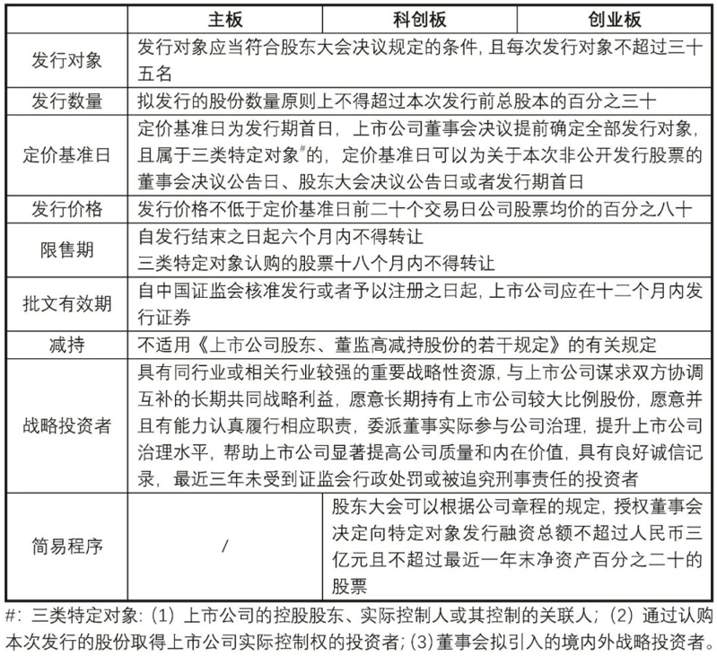 三、主板、科创板、创业板的定向增发规则