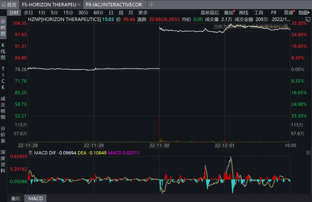 消息宣布后,Horizon股价在盘后交易中股价飙升30%。截至12月1日收盘,Horizon的总市值达228.6亿美元(约合人民币1628亿元)。