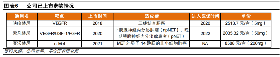 ● 目前三款创新药品中,呋喹替尼国内商业化权益与礼来合作(礼来支付商业化销售额的70%)、索凡替尼保留完整全球权益、赛沃替尼全球商业化权益授予阿斯利康,