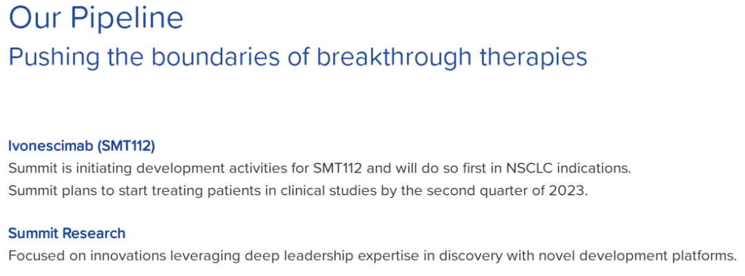 2015年Pharmacyclics被并购后,Duggan创立了自己的个人投资基金。2019年年底,Duggan加入Summit,并在2020年4月收购了Summit的69%以上股权,并开始担任CEO,管理团队中也召唤了不少Pharmacyclics的原班人马,如co-CEO兼总裁Maky Zanganeh为Pharmacyclics原COO,肿瘤/炎症研发负责人Betty Chang为Pharmacyclics原研发负责人,生物统计学和临床运营负责人Fong Clow为Pharmacyclics原生物统计学负责人,注册负责人Urte Gayko为Pharmacyclics原注册负责人,临床负责人Danelle James为Pharmacyclics原依鲁替尼全球临床负责人等等。Summit虽小,却由Duggan搭建了一个稳定而强大的执行团队。