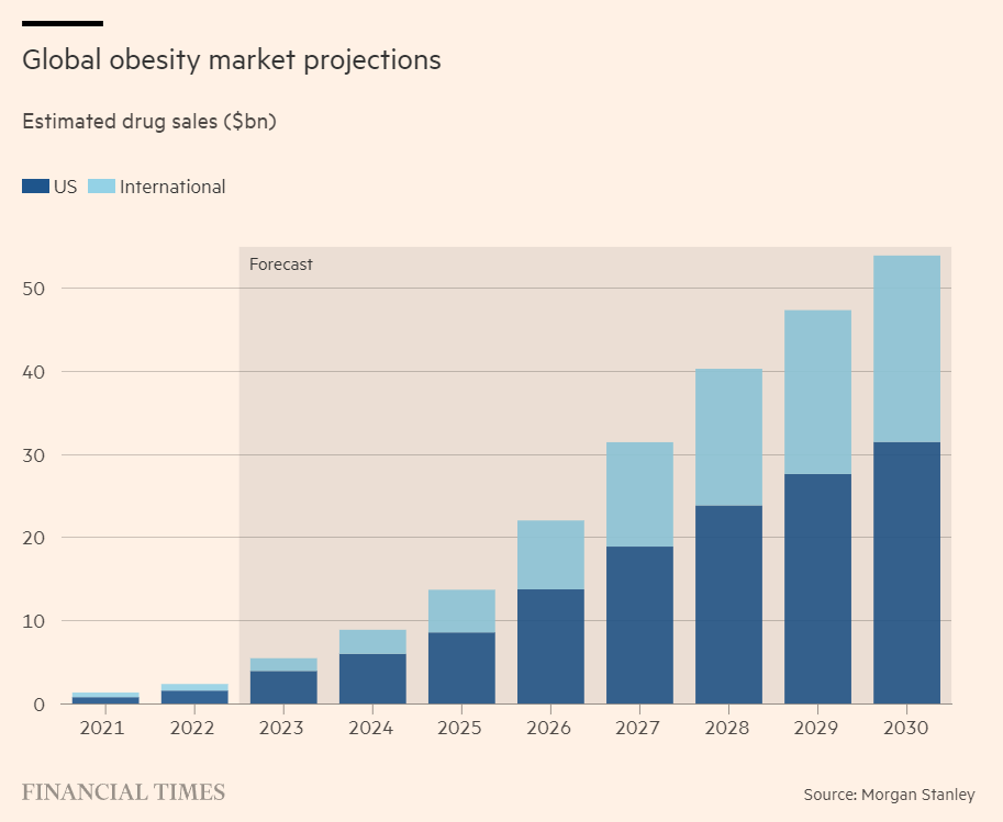 1.Big Pharma targets $50bn obesity drugs market as demand booms;Financial Times