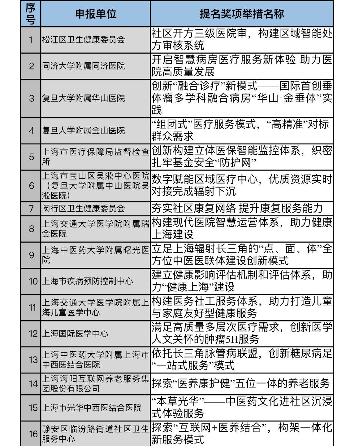 【附】“第五届上海医改十大创新举措”评选获奖名单: