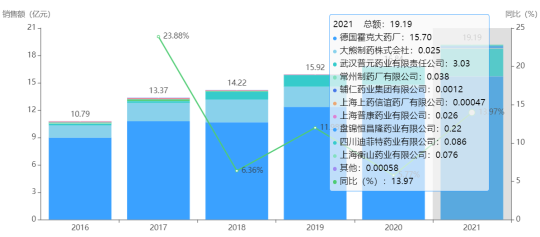 图1 国内熊去氧胆酸化药制剂销售情况(医院端,亿元)