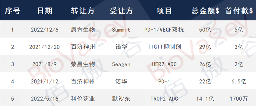 近两年来,国产创新药正在加速推动出海进程。相较于国内市场而言,欧洲、美国、日本的整体创新药市场空间广阔、支付能力也更强。与海外企业合作license out既能在研发端实现优势互补、降低新药研发风险,又能在销售端借助国际大药企的销售网络,使国产创新药更快地打入国际市场。以下盘点了国内2021-2022肿瘤领域的创新药 license out 交易Top5,与大家分享。