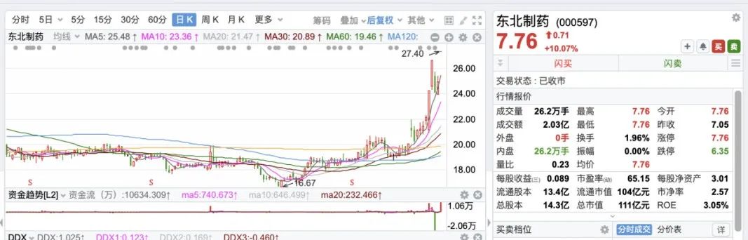 12月19日,东北制药开盘即涨停,截止收盘价为7.76元/股,涨10.07%;以连花清瘟为代表产品的以岭药业,在本月达到历史高价53.96元/股;自11月24日以来,金石亚药近17个交易日已走出翻倍行情,该股现价19.38元/股;布洛芬原料药龙头新华制药在最近10个交易日已收获8个涨停板。