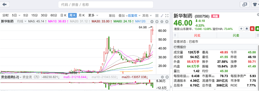 近期解热镇痛类药物市场需求井喷,A股布洛芬原料药龙头新华制药炙手可热,股价10天8板,五日涨幅达到83.33%,累计涨幅超过115%。