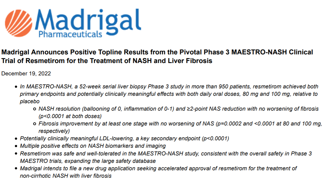 1.https://ir.madrigalpharma.com/news-releases/news-release-details/madrigal-announces-positive-topline-results-pivotal-phase-3