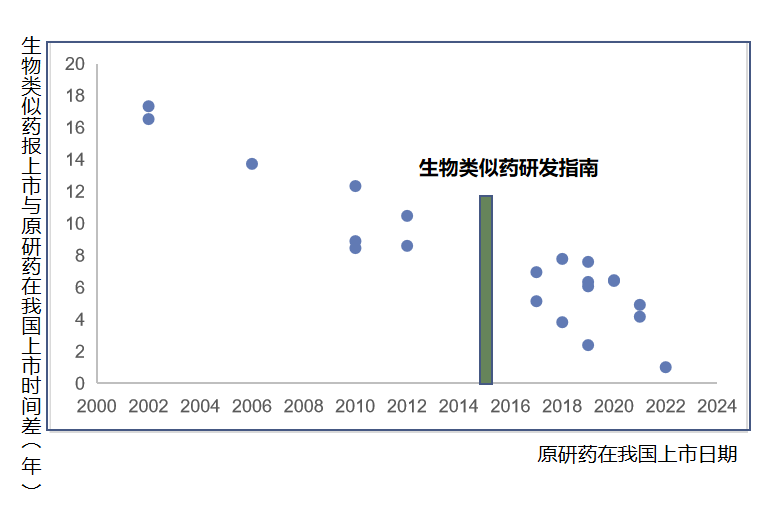 图 3. 生物类似药上市距离原研药在我国上市的时间注