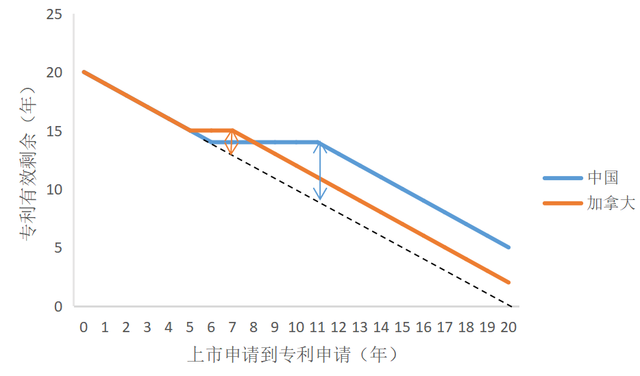 图 4. 中国和加拿大专利期补偿示意图