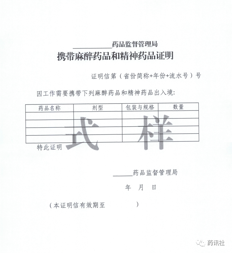 3.携带麻醉药品和精神药品证明式样