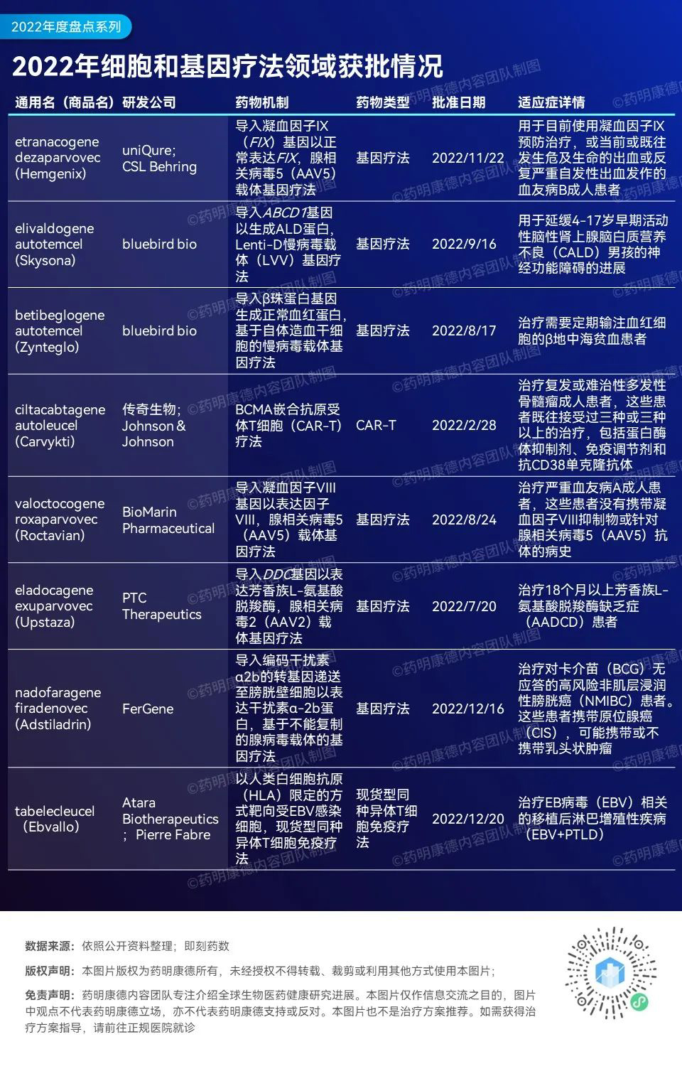 ▲8款细胞和基因疗法在2022年得到FDA或欧盟委员会的批准(药明康德内容团队制图)