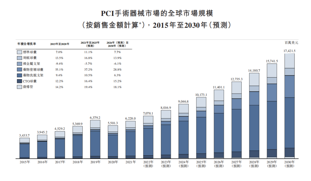 PCI手术器械的全球市场规模 来源:招股书