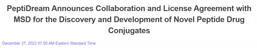 PeptiDream将提供从其专有肽发现平台系统(“PDPS”)技术中识别的候选肽,作为针对默沙东感兴趣靶点的PDCs。默沙东将拥有与细胞毒性有效载荷结合的候选肽的独家权利,并将负责合作产生的任何PDC产品的所有开发方面。新的合作和许可协议建立在两家公司之间的长期合作关系基础上,该合作关系始于2015年4月的多靶点发现和优化合作。