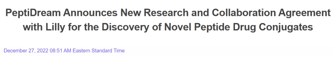 根据该协议,PeptiDream将利用其专有的肽发现平台系统(“PDPS”)技术,识别礼来选定的感兴趣靶点的高亲和力大环肽配体,能够向礼来感兴趣的某些细胞和组织递送礼来偶联的有效载荷。PeptiDream将领导肽发现和优化工作,礼来将领导有效载荷发现和优化努力。礼来将负责合作产生的任何PDC产品的所有开发方面。